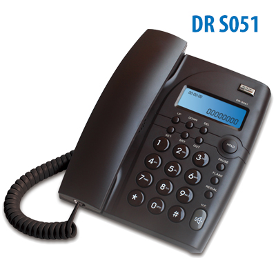DR-S051 FSK/DTMF dual system compatible Music on hold 30 group of incoming number memory 5 group of outgoing number memory Backlight LCD display Handsfree function Tone/Pulse dialing mode LCD brightness adjustable Long distance lock Suitable for PABX