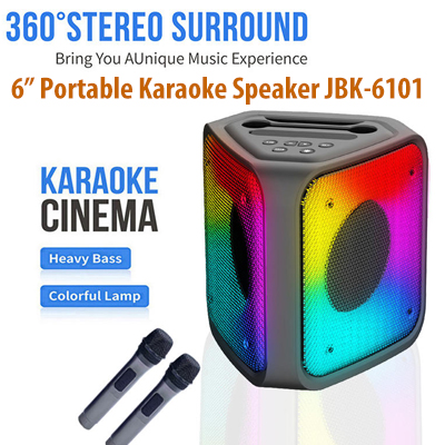 6" Portable karaoke speaker Battery capacity 3500mAh 7.4V Frequency: 100-18000HZ Loudspeaker: 6.5"+1.5" (external diameter 165mm+40mm) magnetic resistant Power supplied: 5.0V/2A Signal and noise ratio of power amplifier >80db Rs. 7320